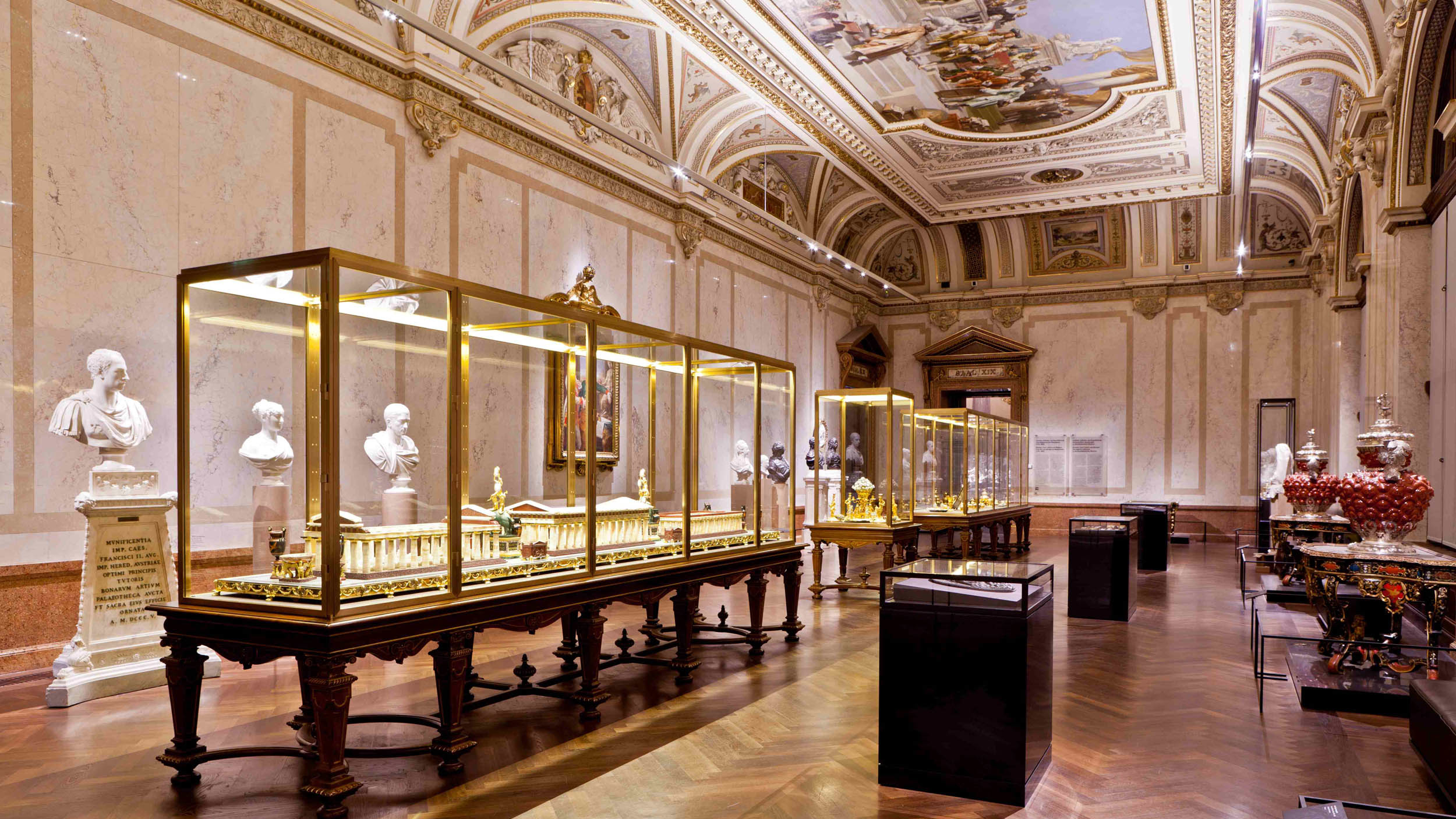 Vom späten Mittelalter bis zur Barockzeit waren die Habsburger begeisterte Sammler, die die Kunstkammer mit exotischen Stücken gepaart mit hervorragender Handwerkskunst gefüllt haben. Vor allem das Seltene, Kuriose und Außergewöhnliche wie edle Steine, Straußeneier, Korallen oder Haifischzähne galten als erstrebenswert. Die Kunstkammer Wien ist weltweit die bedeutendste ihrer Art. Zu den Höhepunkten der Kunstkammer Wien zählen herausragende Goldschmiedearbeiten wie die berühmte Saliera von Benvenuto Cellini, Spitzenleistungen der Skulptur wie die Krumauer Madonna, meisterhafte Bronzestatuetten, filigrane und bizarre Elfenbeinarbeiten, virtuose Steingefäße, aber auch wertvolle Uhren, komplizierte Automaten, merkwürdige wissenschaftliche Instrumente, kostbare Spiele und vieles mehr. Während einer kleinen Stärkung im Museum, bewundern Sie dessen Interieur, das ganz im Sinne des Historismus von berühmten Künstlern, wie Mihaly Munkaczy, Hans Makart, den Brüdern Gustav und Ernst Klimt und Franz Matsch wundervoll ausgestaltet wurde.